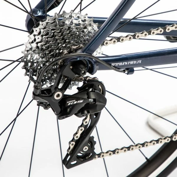 Le cadre a une géométrie endurance , ce qui permet d’avaler les kilomètres avec un maximum de confort.