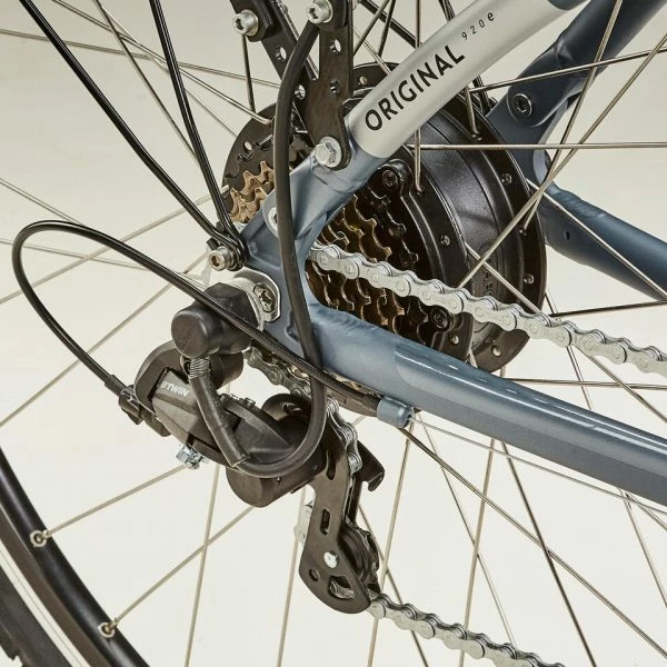 L’original 920 E est équipé de pneus polyvalents route et chemin BTWIN TREKKING pour vous accompagner n’importe ou.