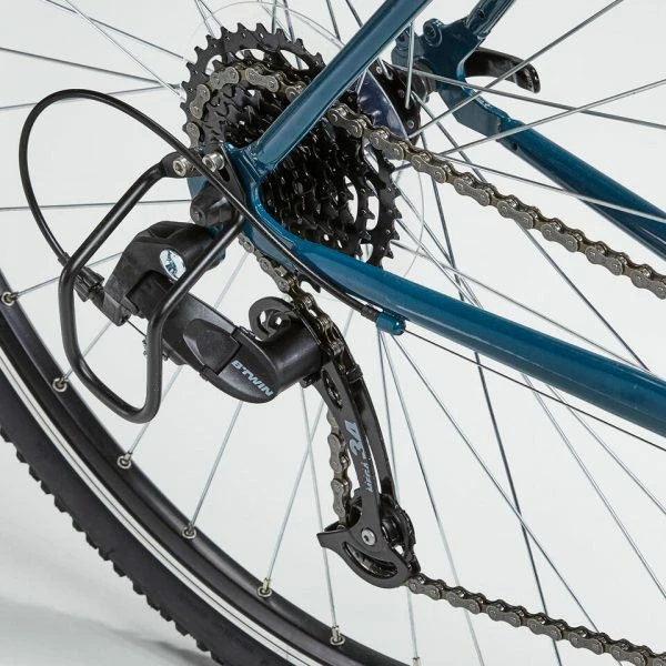 La transmission mono-plateau vous facile la vie : Vous changez les vitesses avec une seule gâchette. L’étagement des vitesses est prévu pour permettre le franchissement de petites côtes.
