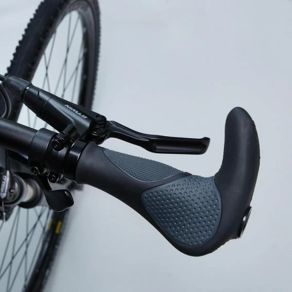 Grips ergonomiques multi-position. Fourche suspendue blocable et réglable.