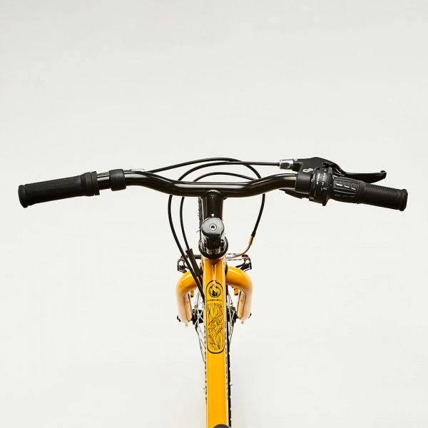 VTC équipé de 6 vitesses, avec leviers de frein adaptés à la main de l’enfant.