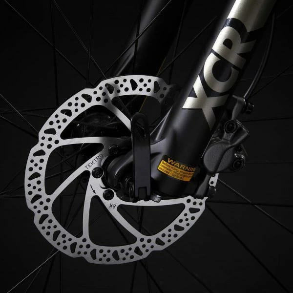 Affrontez les nouveaux obstacles (racines, cailloux, pierres,…) en toute sérénité grâce au débattement de la fourche avant.
